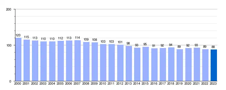| Gráfica de evolución demográfica de Val de San Román entre 2000 y 2023 |