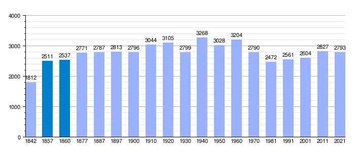 | Gráfica de evolución demográfica de Val de San Vicente[7] entre 1842 y 2021 |