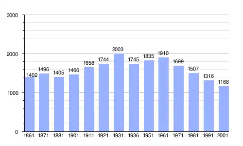 | Gráfica de evolución demográfica de Valbondione entre 1861 y 2001 |
