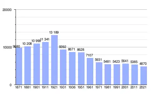 | Gráfica de evolución demográfica de Valbrenta entre 1871 y 2021 |