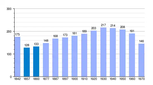 | Gráfica de evolución demográfica de Valdecolmenas de Arriba[2] entre 1842 y 1970 |