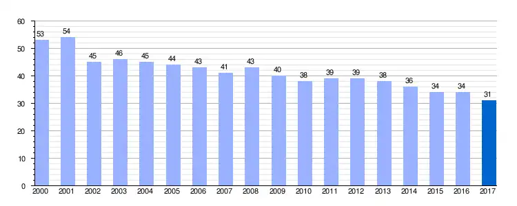 | Gráfica de evolución demográfica de Valdecolmenas de Arriba entre 2000 y 2017 |