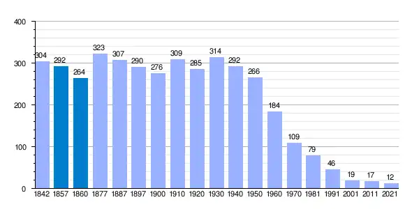| Gráfica de evolución demográfica de Valdelagua del Cerro[10] entre 1842 y 2021 |
