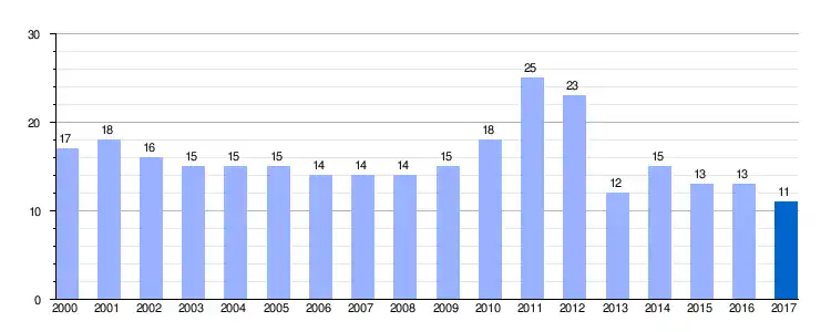 | Gráfica de evolución demográfica de Valdemanzanas entre 2000 y 2017 |