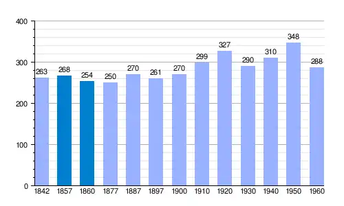 | Gráfica de evolución demográfica de Valdenoches[13] entre 1842 y 1960 |