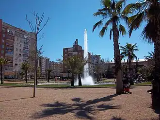Es una de las zonas con mayor atractivo visual de la ciudad. Muchos de sus edificios están adscritos a la Arquitectura brutalista. La avenida Sinforiano Madroñero, la principal del barrio, cuenta con dos carriles en cada dirección, un carril bici, impresionantes fuentes ornamentales, preciosos jardines a los lados y, además, finaliza en el espectacular Puente Real, un puente sobre el río Guadiana que es símbolo de la ciudad.