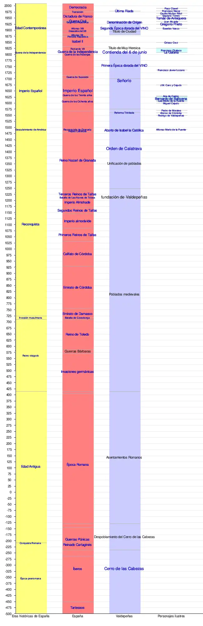 Valdepeñas es un municipio y una ciudad[2] española de la provincia de Ciudad Real, en la comunidad autónoma de Castilla-La Mancha. El término municipal, cuya población asciende a 30 617 habitantes (INE 2024), incluye, además del núcleo urbano principal homónimo, los barrios de Consolación y El Peral.