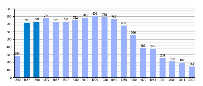 Hacia mediados del siglo XIX, la localidad contaba con una población de 284 habitantes.[26] Aparece descrita en el decimoquinto volumen del Diccionario geográfico-estadístico-histórico de España y sus posesiones de Ultramar de Pascual Madoz de la siguiente manera: