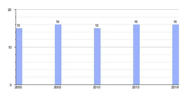 | Gráfica de evolución demográfica de Valdomir entre 2000 y 2019 |