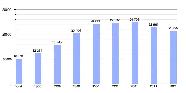 | Gráfica de evolución demográfica de Vale de Cambra entre 1864 y 2021 |