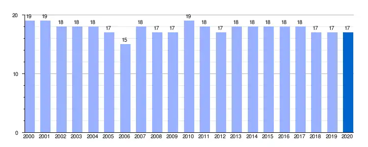 | Gráfica de evolución demográfica de Valenoso entre 2000 y 2020 |