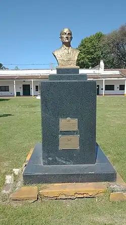 Un busto del profesor Valentín Mestroni se encuentra en el jardín frente a la regencia de estudios del Liceo Miliar General San Martín.