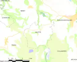 Valette es una población y comuna francesa, situada en la región de Auvernia, departamento de Cantal, en el distrito de Mauriac y cantón de Riom-ès-Montagnes.