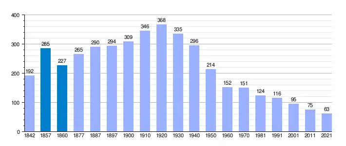 | Gráfica de evolución demográfica de Valfarta[5] entre 1842 y 2021 |