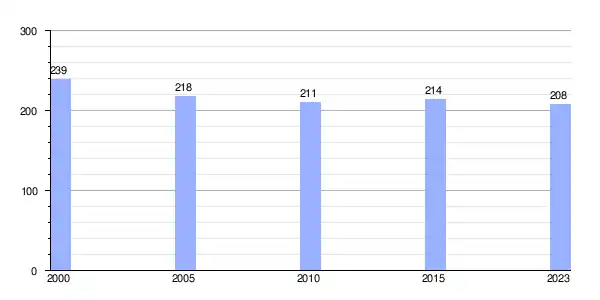 | Gráfica de evolución demográfica de Valiñas entre 2000 y 2023 |