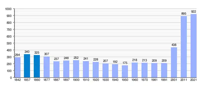 | Gráfica de evolución demográfica de Vall-Llobrega[2] entre 1842 y 2021 |