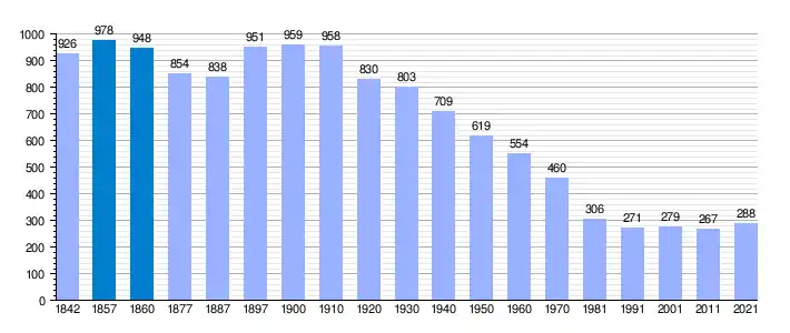 | Gráfica de evolución demográfica de Vall de Almonacid[1] entre 1842 y 2021 |