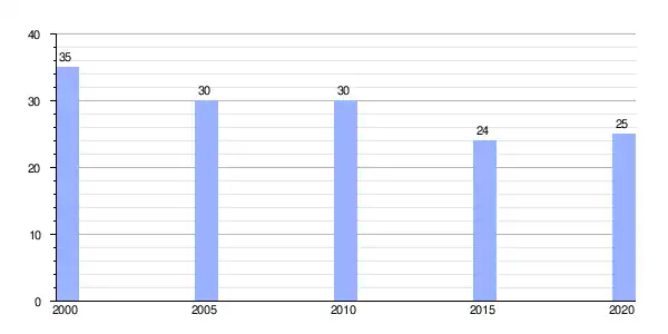 | Gráfica de evolución demográfica de Valladolid entre 2000 y 2020 |