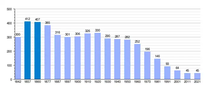 | Gráfica de evolución demográfica de Vallarta de Bureba[4] entre 1842 y 2021 |