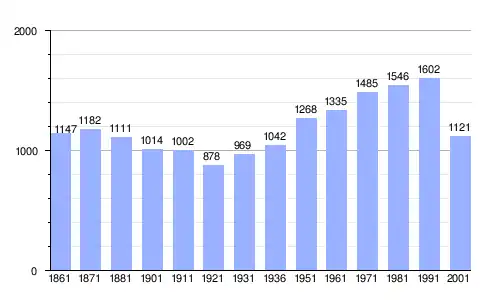 | Gráfica de evolución demográfica de Valle Agricola entre 1861 y 2001 |