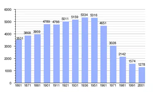 | Gráfica de evolución demográfica de Valle Castellana entre 1861 y 2001 |
