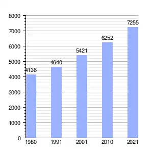 | Gráfica de evolución demográfica de Valle Hermoso entre 1980 y 2021 |