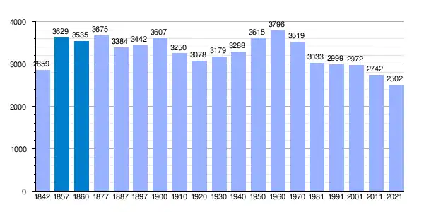 | Gráfica de evolución demográfica de Valle de Abdalajís[17] entre 1842 y 2021 |