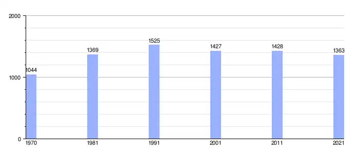 Gráfica de evolución demográfica de Valle de Achondo[5]​ entre 1970 y 2021