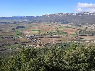 ![]() Vista del Valle de Allin desde el mirador de Lazkua. En primer plano a la derecha, Larrión; al fondo, a la izquierda, Sierra de Lóquiz. | ||
