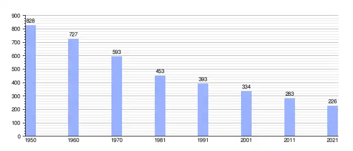 | Gráfica de evolución demográfica de Valle de Arana[2] entre 1950 y 2021 |
