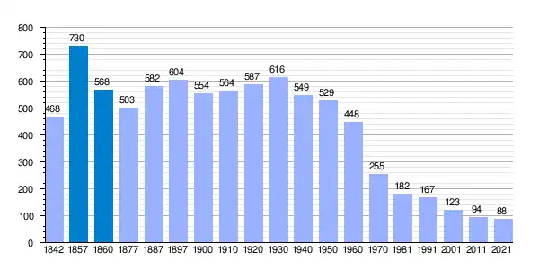 | Gráfica de evolución demográfica de Valle de Cerrato[2] entre 1842 y 2021 |