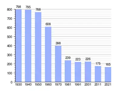 | Gráfica de evolución demográfica de Valle de Oca[2] entre 1930 y 2021 |