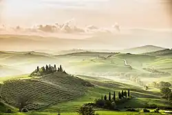 ![]() Típico paisaje del valle de Orcia, cerca de Pienza. | ||