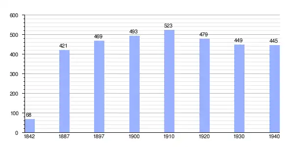 | Gráfica de evolución demográfica de Valle de Santullán[5] entre 1842 y 1940 |