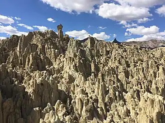 El valle de la Luna es un área protegida municipal[1] y formación geológica de la ciudad de La Paz, sede de gobierno de Bolivia. Se encuentra a unos 10 kilómetros del centro urbano de la ciudad y administrativamente pertenece al Macro distrito de Mallasa.
