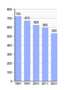 | Gráfica de evolución demográfica de Valle de las Navas[2] entre 1981 y 2021 |