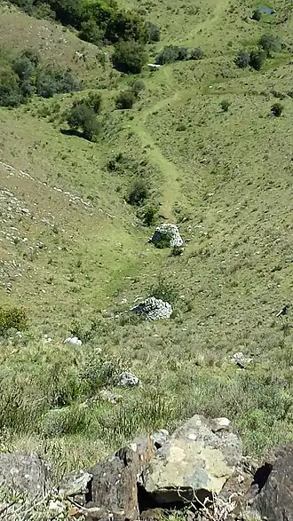Los cairnes o montículos de piedra, fueron construidos por grupos indígenas sobre la ladera noroeste del cerro. Las dataciones basadas en el estudio geológico de las piedras de un color blanquecino, determinaron en 1000 años su antigüedad.
