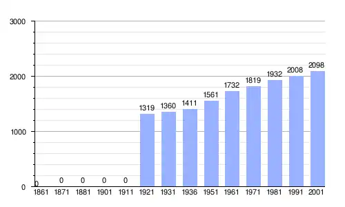 | Gráfica de evolución demográfica de Valle di Casies entre 1861 y 2001 |