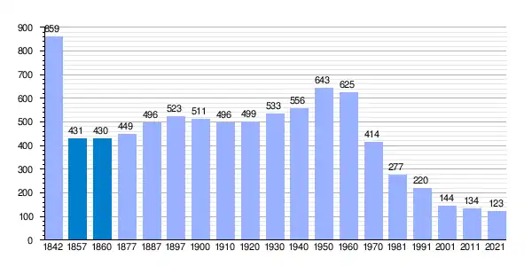 Población de derecho según los censos de población del INE Población de hecho según los censos de población del INE Entre el censo de 1857 y el anterior disminuye el término del municipio porque independiza a Gordaliza del Pino[7] |