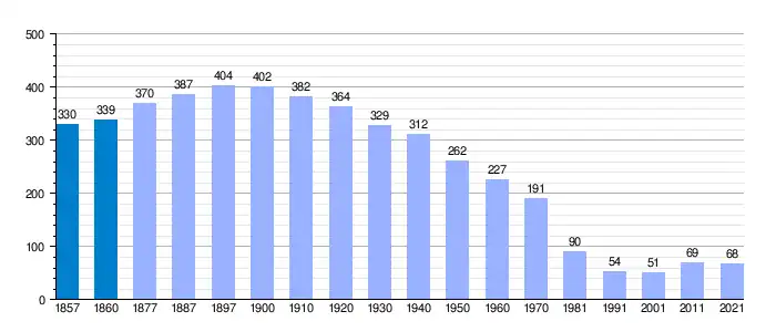 | Gráfica de evolución demográfica de Vallejera de Riofrío[5] entre 1857 y 2021 |