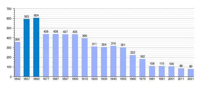 | Gráfica de evolución demográfica de Valles de Palenzuela[2] entre 1842 y 2021 |