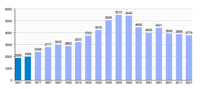 | Gráfica de evolución demográfica de Valleseco[10] entre 1857 y 2021 |