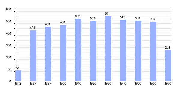 | Gráfica de evolución demográfica de Valoria de Aguilar[1] entre 1842 y 1970 |