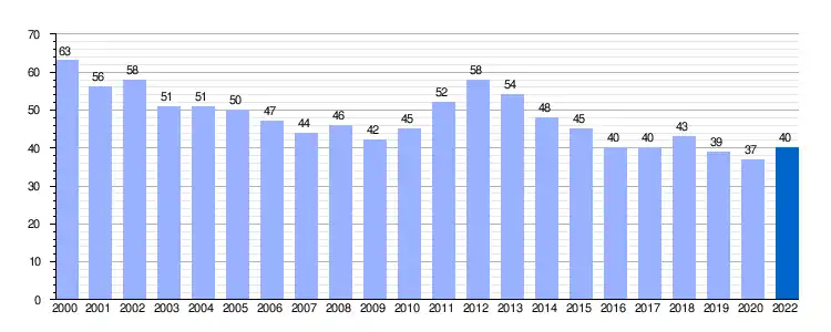 | Gráfica de evolución demográfica de Valoria de Aguilar entre 2000 y 2022 |