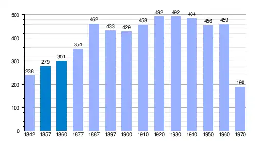 | Gráfica de evolución demográfica de Valparaíso de Arriba[1] entre 1842 y 1970 |