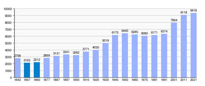 | Gráfica de evolución demográfica de Valsequillo de Gran Canaria[11] entre 1842 y 2021 |