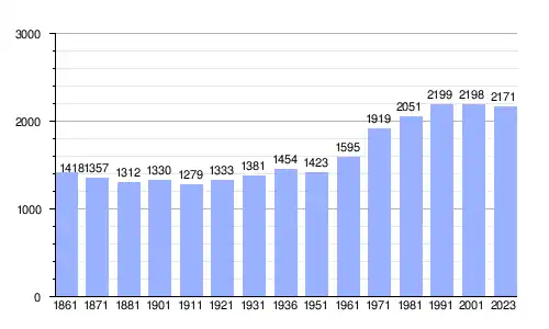 | Gráfica de evolución demográfica de Valtournenche entre 1861 y 2023 |