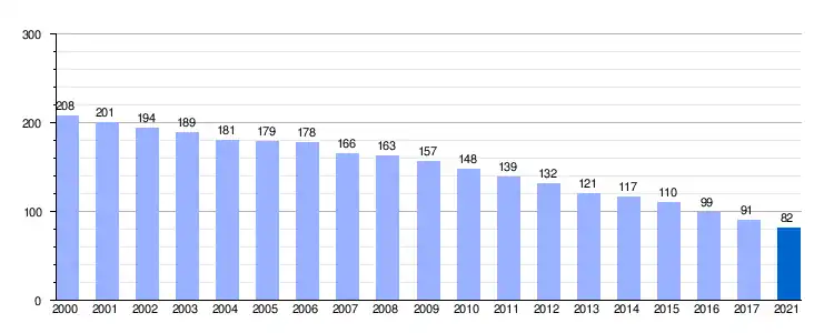 | Gráfica de evolución demográfica de Valtuille de Arriba entre 2000 y 2021 |