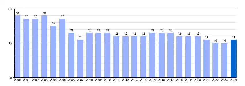 | Gráfica de evolución demográfica de Valverdín[3] entre 2000 y 2024 |