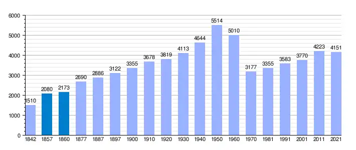 Gráfica de evolución demográfica de Valverde de Leganés[4]​ entre 1842 y 2021